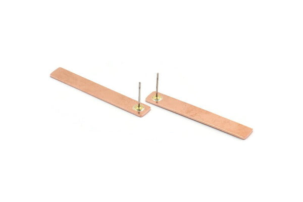 Raw Copper Rectangle Stud Earrings