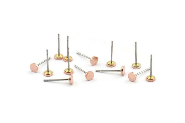 Copper Round Earring, 12 Raw Copper Round Earring Studs (4x0.80mm) A2089