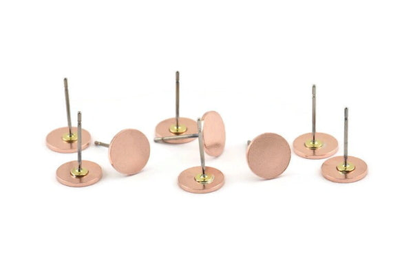 Copper Round Earring, 12 Raw Copper Round Stud Earrings (8x0.80mm) M002 A1497
