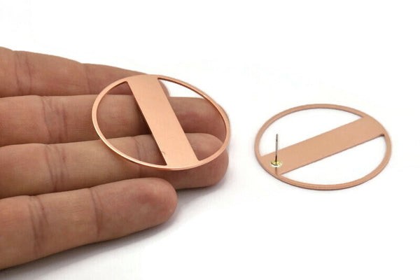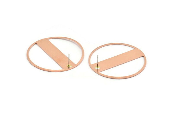 Copper Round Earring, 2 Raw Copper Round Stud Earrings (43x0.90mm) M552 A5528