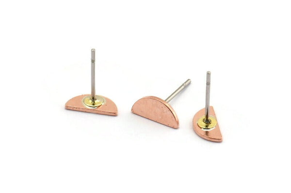 Copper Semi Circle Earring, 12 Raw Copper Tiny Half Moon Stud Earring (9x4x0.80mm) M02358 A6086