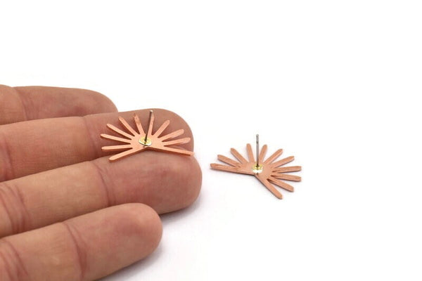 Copper Sun Earring, 4 Raw Copper Sun Stud Earrings (18x25x0.80mm) M02284