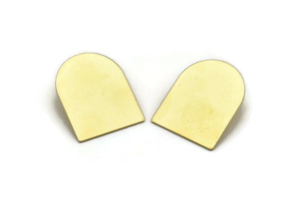 D Shape Earring, 4 Raw Brass D Shaped Stud Earrings, Findings (35x28x0.80mm) M355 A5589