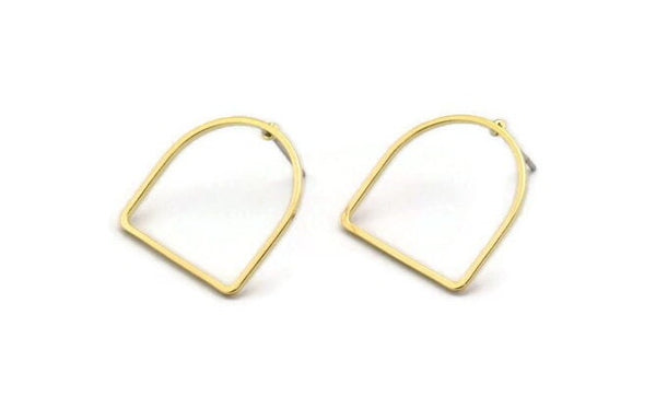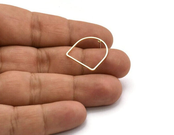 D Shape Earring, 8 Raw Brass D Shape Stud Earrings (19x19x1mm) BS 2329 A6861