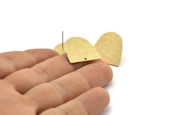 Textured Raw Brass D Shaped Stud Earrings