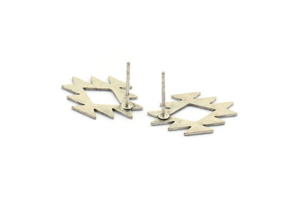 Antique Silver Plated Brass Ethnic Motif Shaped Stud Earrings