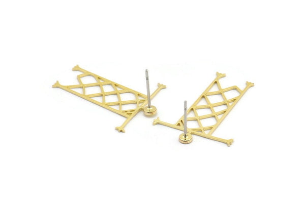 Earring Studs, 10 Raw Brass - Ethnic Motif Human Shaped Stud Earrings - Brass Earrings - Earrings (28x21x0.60mm) A2935
