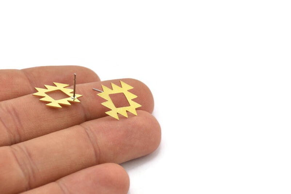 Earring Studs, 10 Raw Brass - Ethnic Motif Shaped Stud Earrings - Brass Earrings - Earrings (17x13x0.60mm) A2985