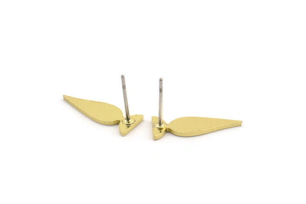 Earring Studs, 10 Raw Brass - Ethnic Motif Shaped Stud Earrings - Brass Earrings - Earrings (17x6x1mm) A3813