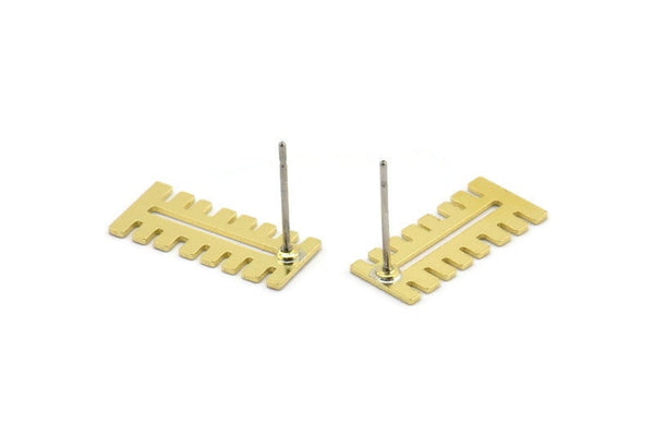 Earring Studs, 10 Raw Brass - Ethnic Motif Shaped Stud Earrings - Brass Earrings - Earrings (18x8x0.60mm) A2925