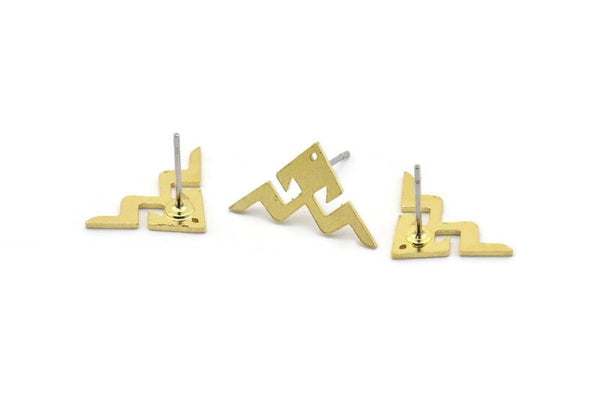 Earring Studs, 10 Raw Brass - Ethnic Motif Shaped Stud Earrings With 1 Hole - Brass Earrings - Earrings (10x17x0.80mm) A2732