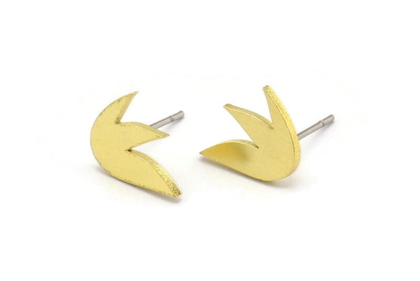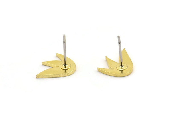 Earring Studs, 10 Raw Brass - Irregular Tulip Shaped Stud Earrings - Brass Earrings - Earrings (10x11x1mm) A3682
