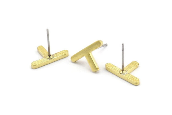 Earring Studs, 10 Raw Brass - T Shape Earrings - Brass Earrings - Earrings (14x9x1.5mm) N1412