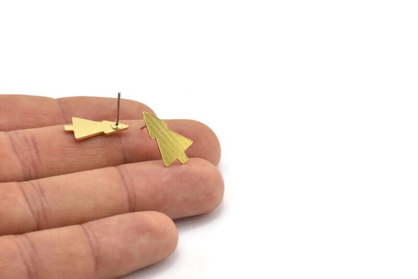 Raw Brass Tree Shaped Stud Earrings