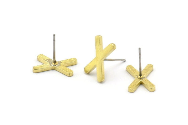 Earring Studs, 10 Raw Brass - X Shape Earrings - Brass Earrings - Earrings (14x9x1.5mm) N1414