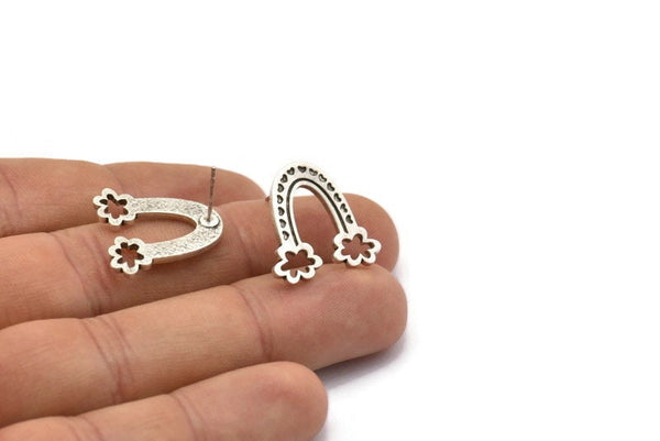 Antique Silver Plated Brass Rainbow Stud Earrings