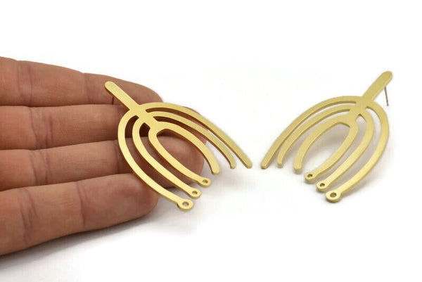Earring Studs, 2 Raw Brass - Irregular Shaped Stud Earrings With 3 Holes - Brass Earrings - Earrings (58x37x1.20mm) A3345