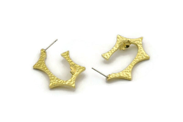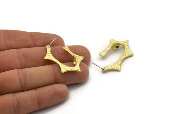 Earring Studs, 2 Raw Brass - Irregular Shaped Stud Earrings With Pad For 7mm Stone - Brass Earrings - Earrings (38x23x1.8mm) N2415