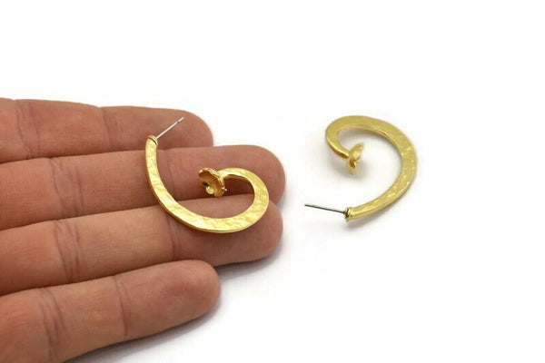 Earring Studs, 2 Raw Brass - Irregular Shaped Stud Earrings With Pad For 7mm Stone - Brass Earrings - Earrings (38x26x1.6mm) N2420