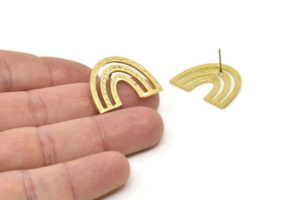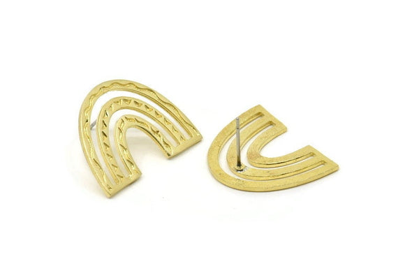 Earring Studs, 2 Raw Brass - U Shape Earrings - Brass Earrings - Earrings (20x25x1mm) N1463