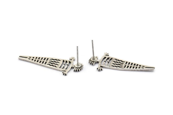 Earring Studs, 4 Antique Silver Plated Brass - Silver Earrings - Earring Findings (33x14x1.2mm) N1665