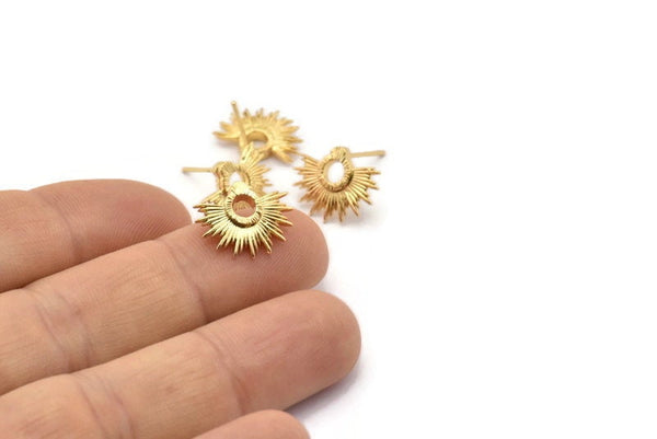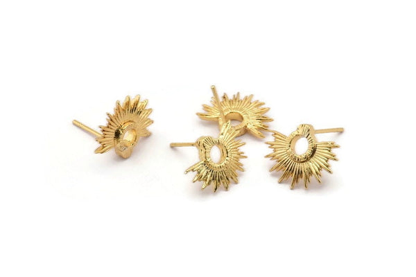 Earring Studs, 4 Gold Plated Brass - Gold Sun Earrings - Gold Earrings - Earrings (15x12mm) N1545
