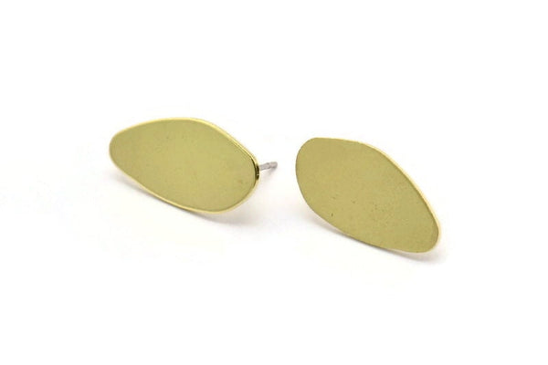 Earring Studs, 4 Raw Brass - Irregular Shaped Stud Earrings - Brass Earrings - Earrings (20x11x0.80mm) M03259 A5783