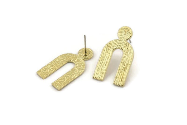 Earring Studs, 4 Raw Brass - U Shape Earrings - Brass Earrings - Earrings (15x27x1.2mm) N1466