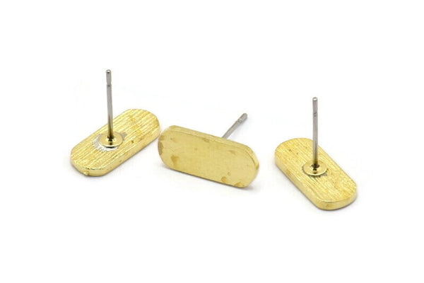 Earring Studs, 6 Raw Brass - Geometric Stud Earrings - Brass Earrings - Earrings (14x6x1.5mm) N1408