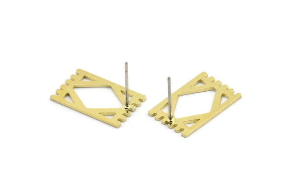 Earring Studs, 8 Raw Brass - Ethnic Motif Shaped Stud Earrings - Brass Earrings - Earrings (18x11x0.80mm) A2849
