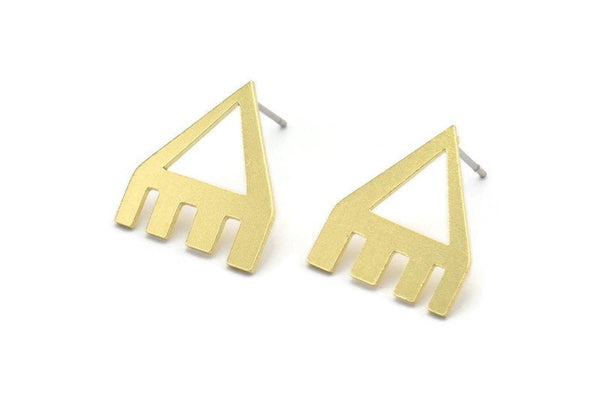 Earring Studs, 8 Raw Brass - Ethnic Motif Shaped Stud Earrings - Brass Earrings - Earrings (18x16x0.80mm) A2829