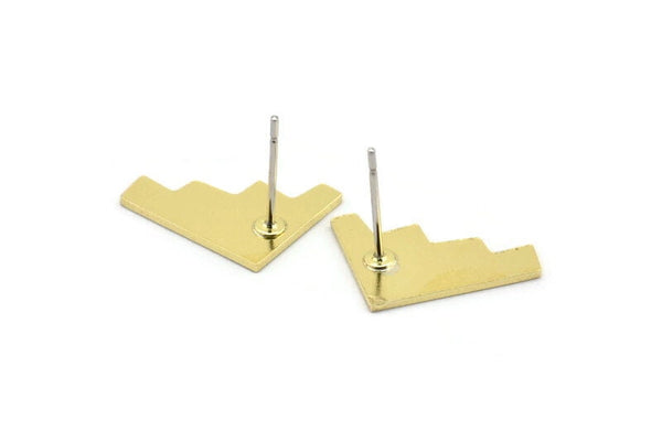 Earring Studs, 8 Raw Brass - Irregular Shaped Stud Earrings - Brass Earrings - Earrings (15x12x0.80mm) A2843