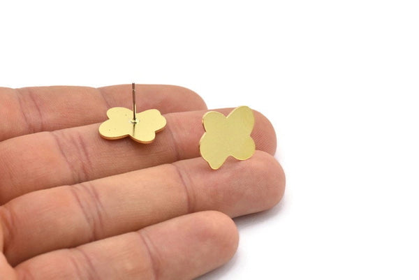 Earring Studs, 8 Raw Brass - Irregular Shaped Stud Earrings - Brass Earrings - Earrings (16x15x0.80mm) A2818