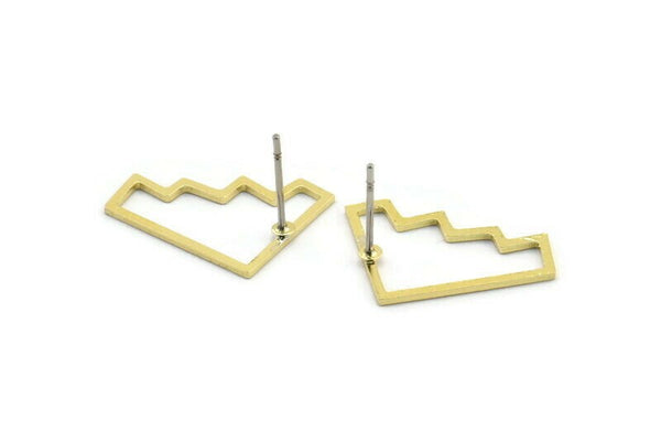 Earring Studs, 8 Raw Brass - Irregular Shaped Stud Earrings - Brass Earrings - Earrings (17x14x0.80mm) A2824