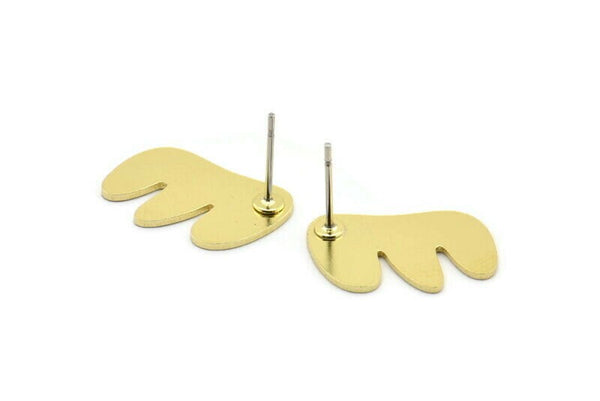 Earring Studs, 8 Raw Brass - Irregular Shaped Stud Earrings - Brass Earrings - Earrings (18x12x0.80mm) A2763