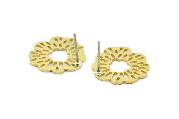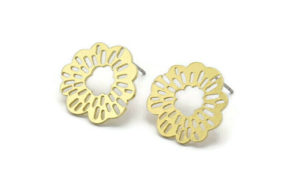 Earring Studs, 8 Raw Brass - Irregular Shaped Stud Earrings - Brass Earrings - Earrings (18x17x0.80mm) A2656
