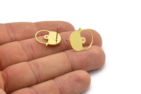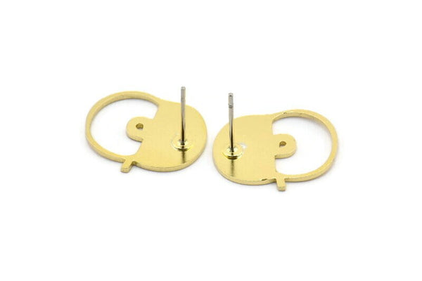 Earring Studs, 8 Raw Brass - Irregular Shaped Stud Earrings With 1 Hole - Brass Earrings - Earrings (18x15x0.80mm) A2796