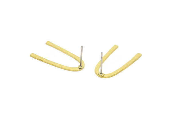 Earring Studs, 8 Raw Brass - U Shape Earrings - Brass Earrings - Earrings (22.5x2x0.60mm) A4866 A3366