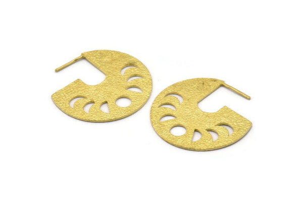 Geometric Earring Findings, 2 Raw Brass Moon Phases Textured Earring Findings (32x34x0.9mm) E199