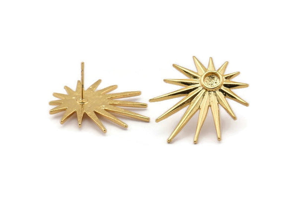 Gold Badge Earring, 2 Gold Plated Brass Rosette Stud Earrings - Pad Size 4mm (29x25mm) N1507