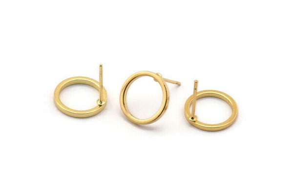 Gold Plated Brass Circle Stud Earrings