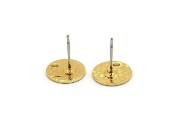 Textured Gold Plated Brass Circle Stud Earrings With 1 Hole