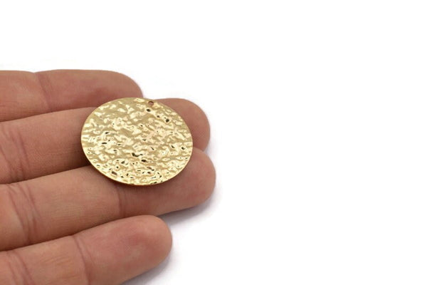 Hammered Gold Plated Brass Round Charms With 1 Hole