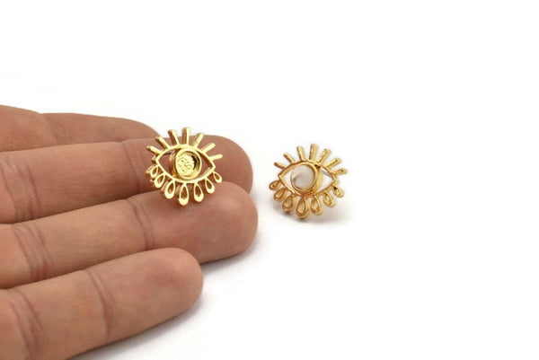 Gold Plated Brass Eye Stud Earrings With 5mm Pad