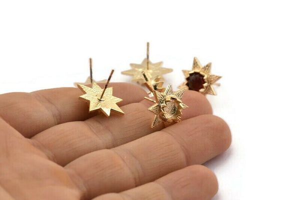 Gold Plated Brass Flower Stud Earrings