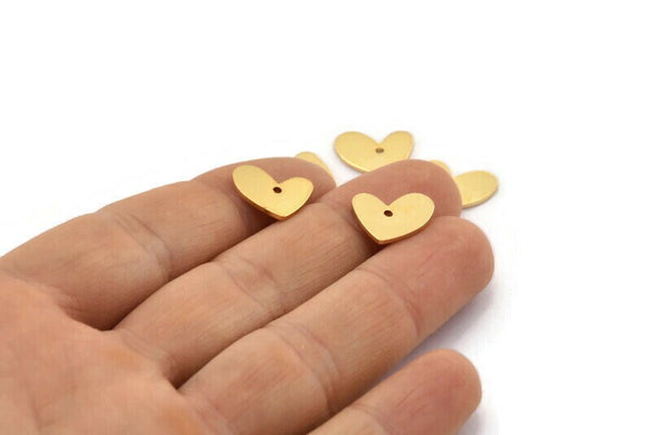 Gold Heart Charm, 6 Gold Plated Brass Heart Charms With 1 Hole (14x11x1mm) M856