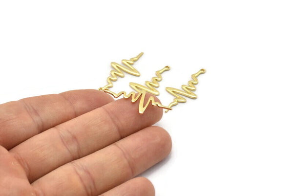 Gold Heart Rhythm Charm, 10 Gold Plated Brass Heart Rhythm Shaped Charms With 1 Loop, Findings, Earrings (30x14x1mm) D1168 Q0883
