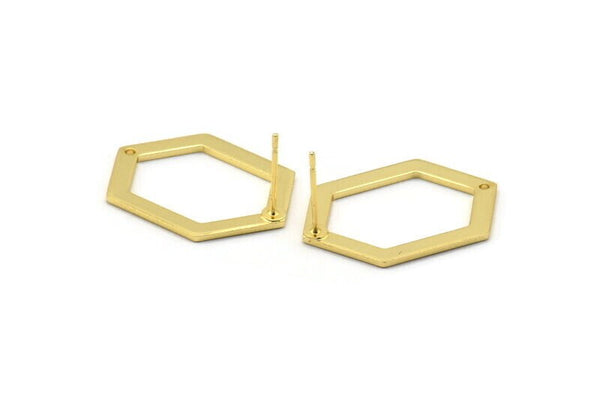 Gold Hexagon Earrings, 2 Gold Plated Brass Hexagon Stud Earrings With 1 Hole (26.5x19x1mm) E018 A1266