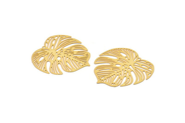 Gold Leaf Charm, 4 Gold Plated Brass Leaf Charms With 1 Hole, Earrings (32mm) D0661