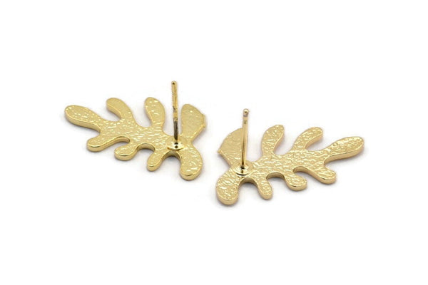 Gold Leaf Earring, 4 Gold Plated Brass Leaf Stud Earrings, Findings (24x15x1.2mm) N1469